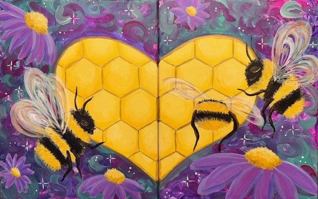 Join us for a FUNdraising Painting Party at Daddy’s Tacos. Arrive early at 12:00pm to order food and settle in. Ages 7 and up. Painting begins at 1pm. Enjoy step by step instructions and a provided stencil, and as always creativity is encouraged. Delicious food and drinks available for purchase at Daddy’s Tacos. This painting is on a 11″ x 14″ canvas. We encourage you to bring a friend or loved one to create both halves or consider signing up for BOTH of our events to celebrate the Bees and Fundraise. Join us for the Encore Event on Mother’s Day, May 10th.